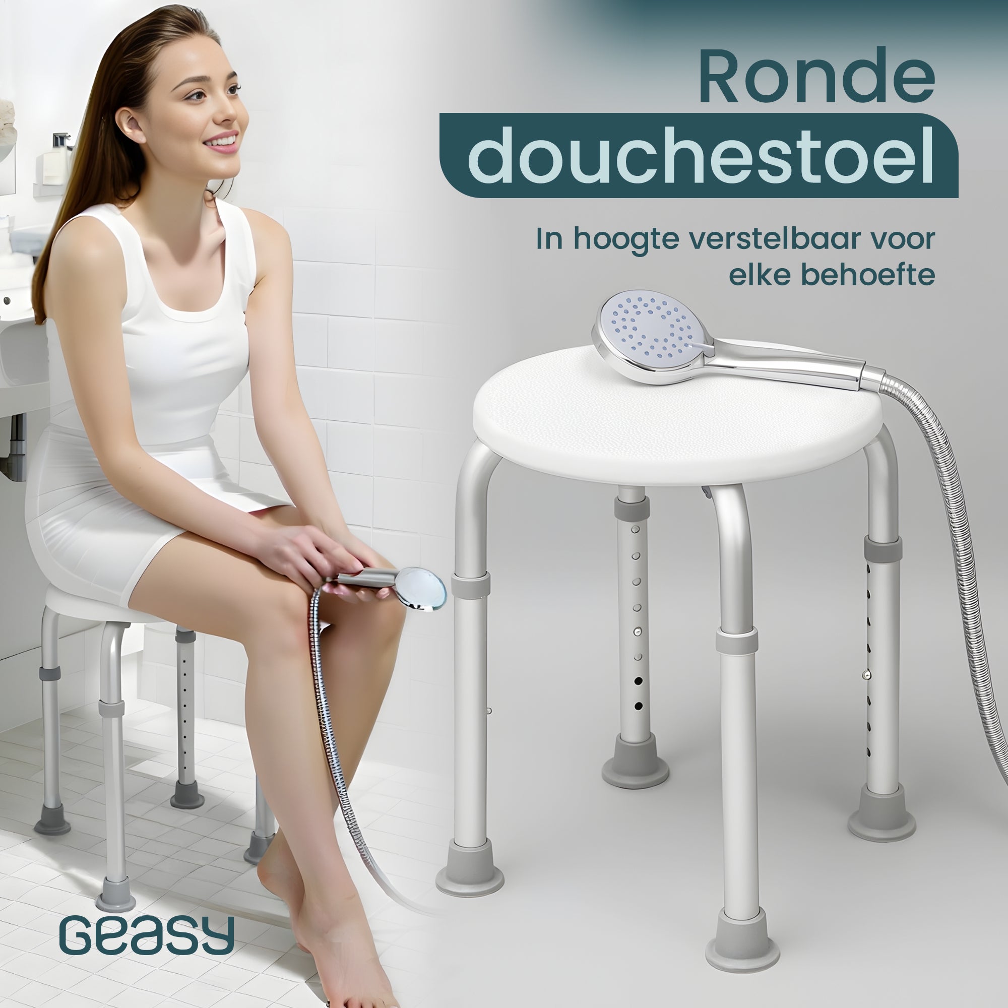 Bij GEASY combineren we comfort met veiligheid. Onze ronde douchekruk is ontwikkeld voor dagelijks gebruik – stijlvol, stevig en volledig gericht op gemak in de badkamer. Een slimme keuze voor iedereen die zelfstandig, comfortabel en veilig wil douchen.